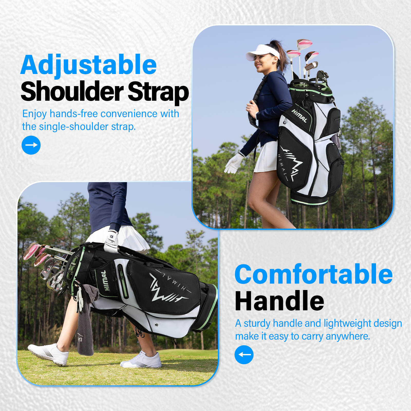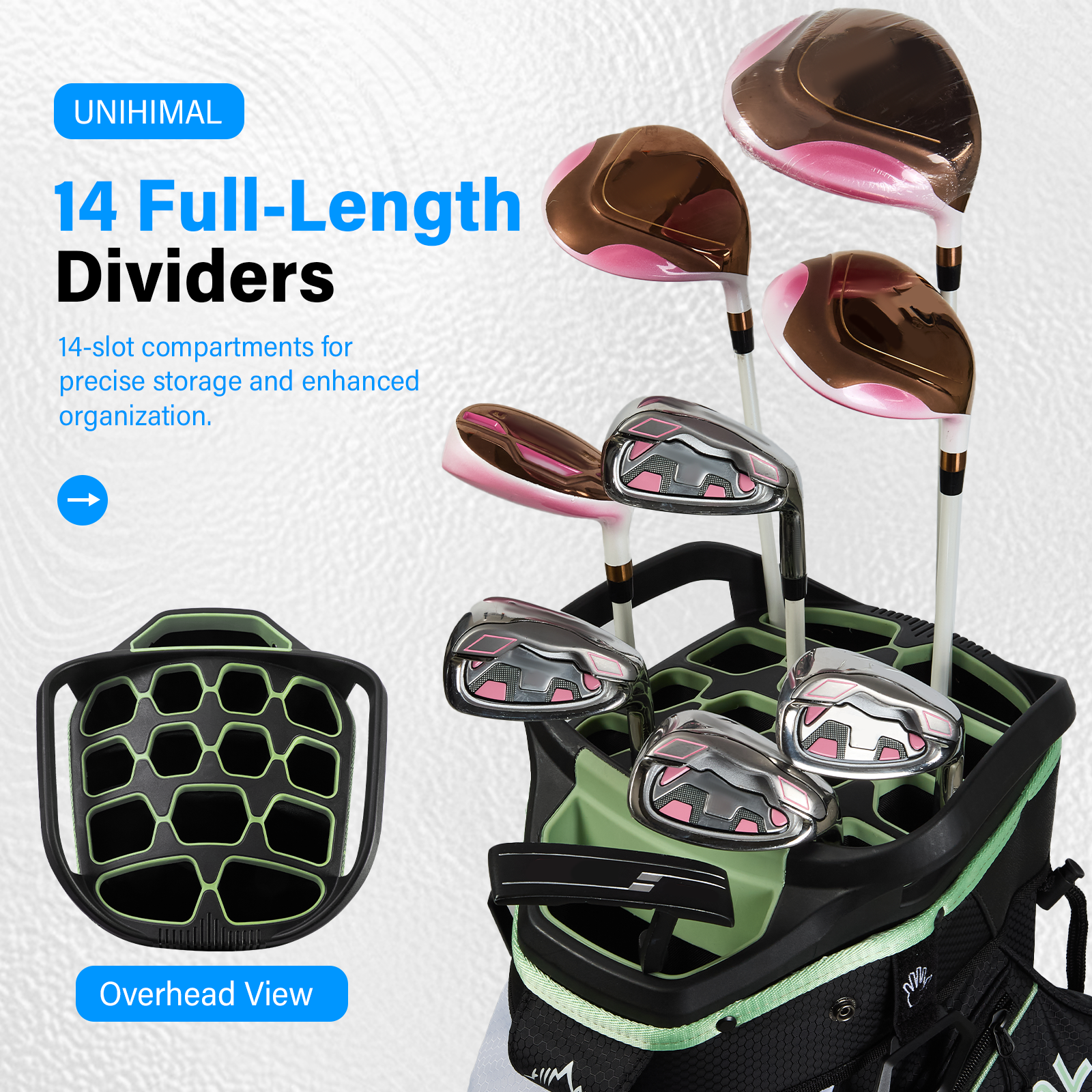 14-Way Full-Length Divider Design: This golf cart bag features a 14-way full-length divider design, reducing friction between clubs and effectively preventing scratches and damage, ensuring your clubs are organized and fully protected