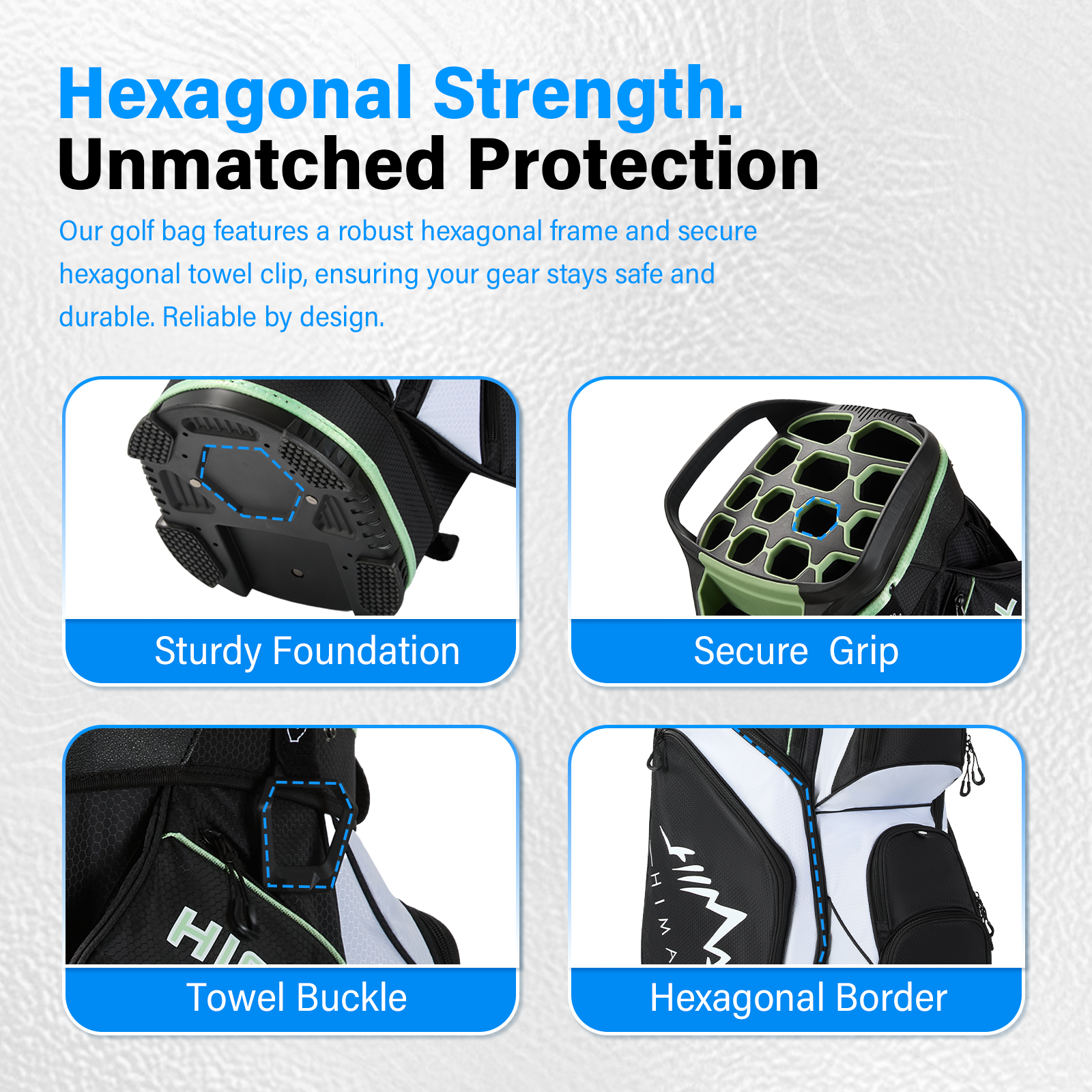 Premium Water-Repellent Fabric: Made from high-quality water-repellent polyester fabric, this golf bag effectively resists rain and stains. It comes with a dedicated rain cover, providing all-around protection to keep your clubs and gear dry in damp conditions
