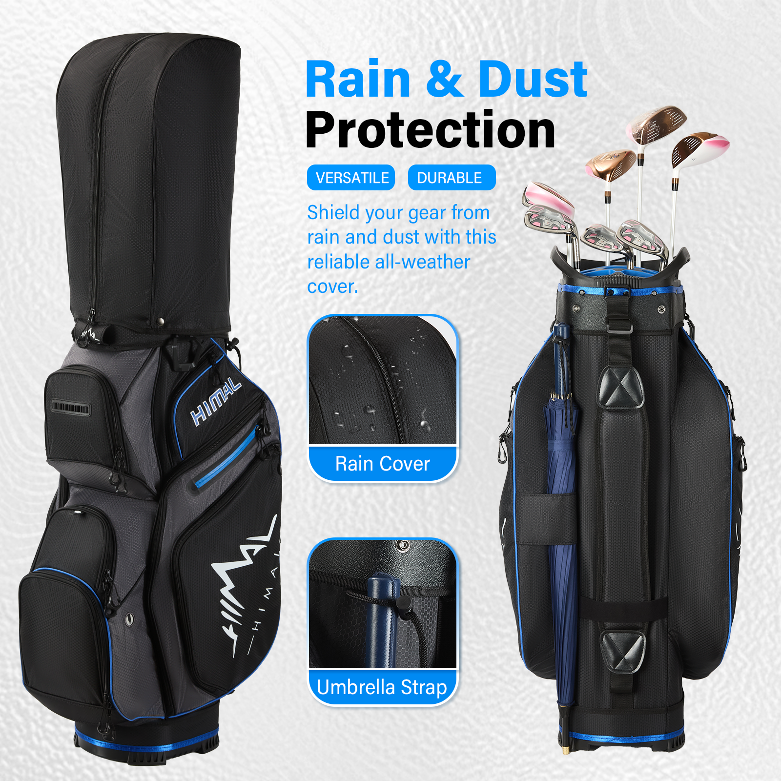 Premium Water-Repellent Fabric: Made from high-quality water-repellent polyester fabric, this golf bag effectively resists rain and stains. It comes with a dedicated rain cover, providing all-around protection to keep your clubs and gear dry in damp conditions
