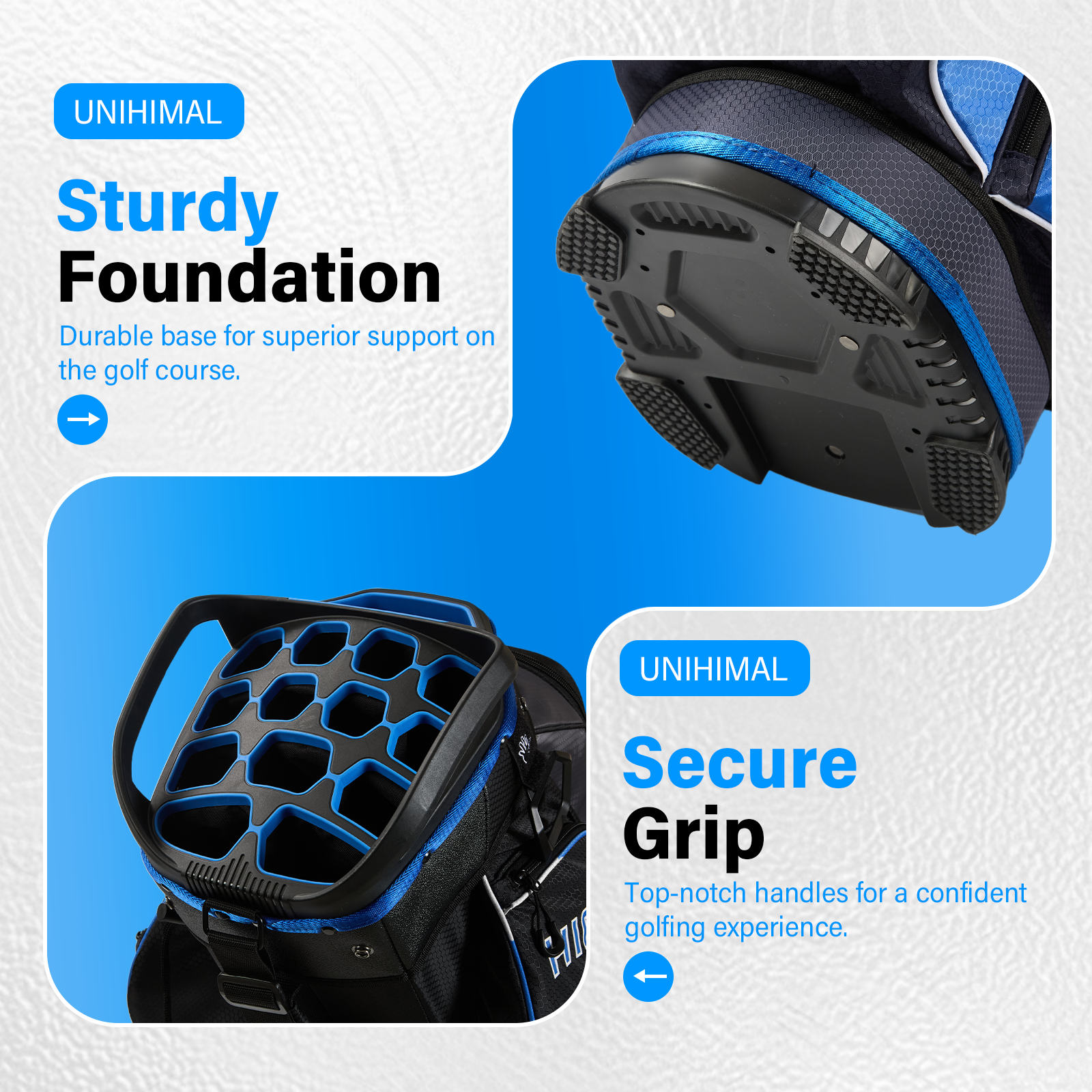 Premium Water-Repellent Fabric: Made from high-quality water-repellent polyester fabric, this golf bag effectively resists rain and stains. It comes with a dedicated rain cover, providing all-around protection to keep your clubs and gear dry in damp conditions