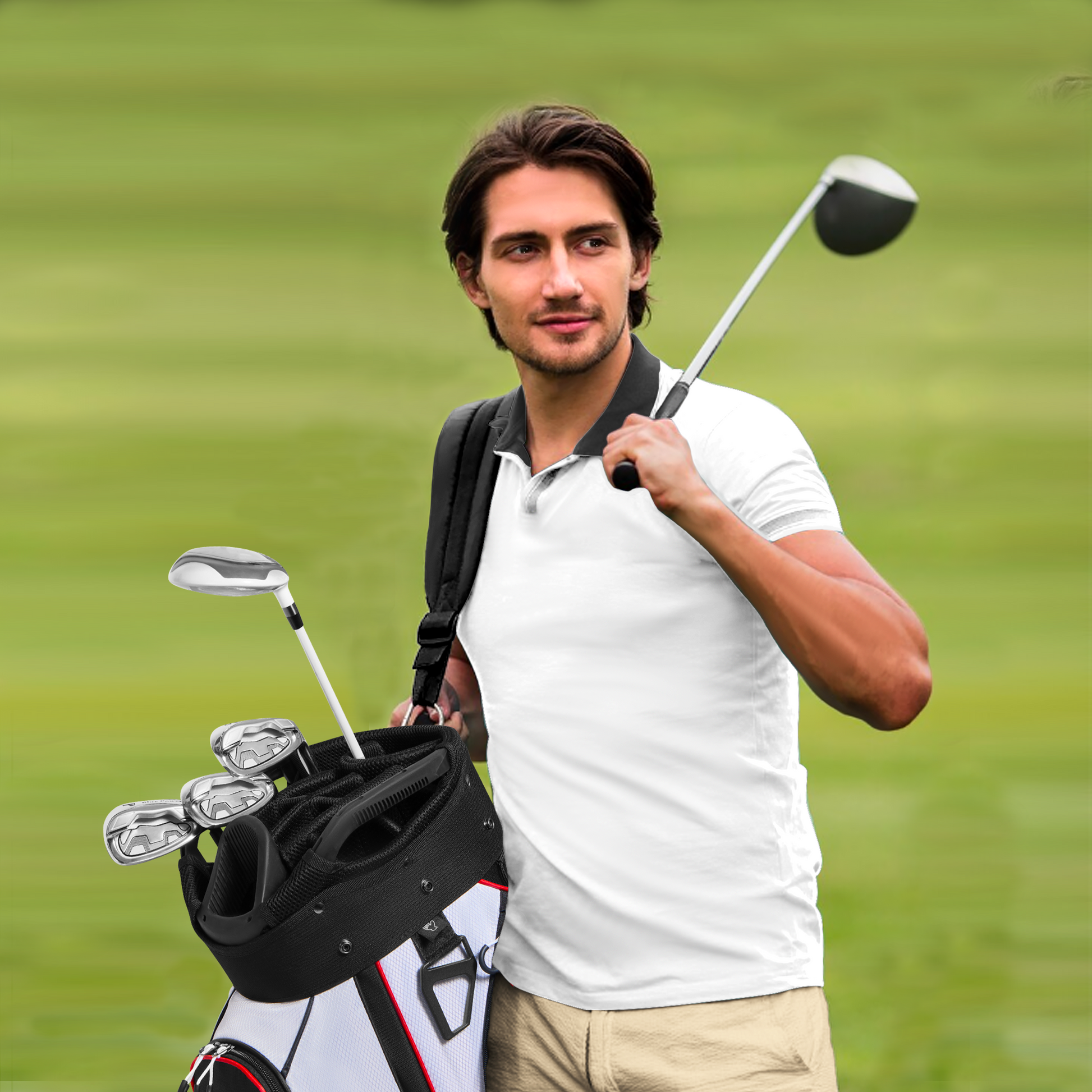 Comfortable Carrying:The Golf Bag features adjustable shoulder straps and multiple handles designed for ergonomic comfort, allowing you to carry it with ease while reducing strain on your shoulders and hands. Ideal for those who use a golf push cart or a golf bag cart