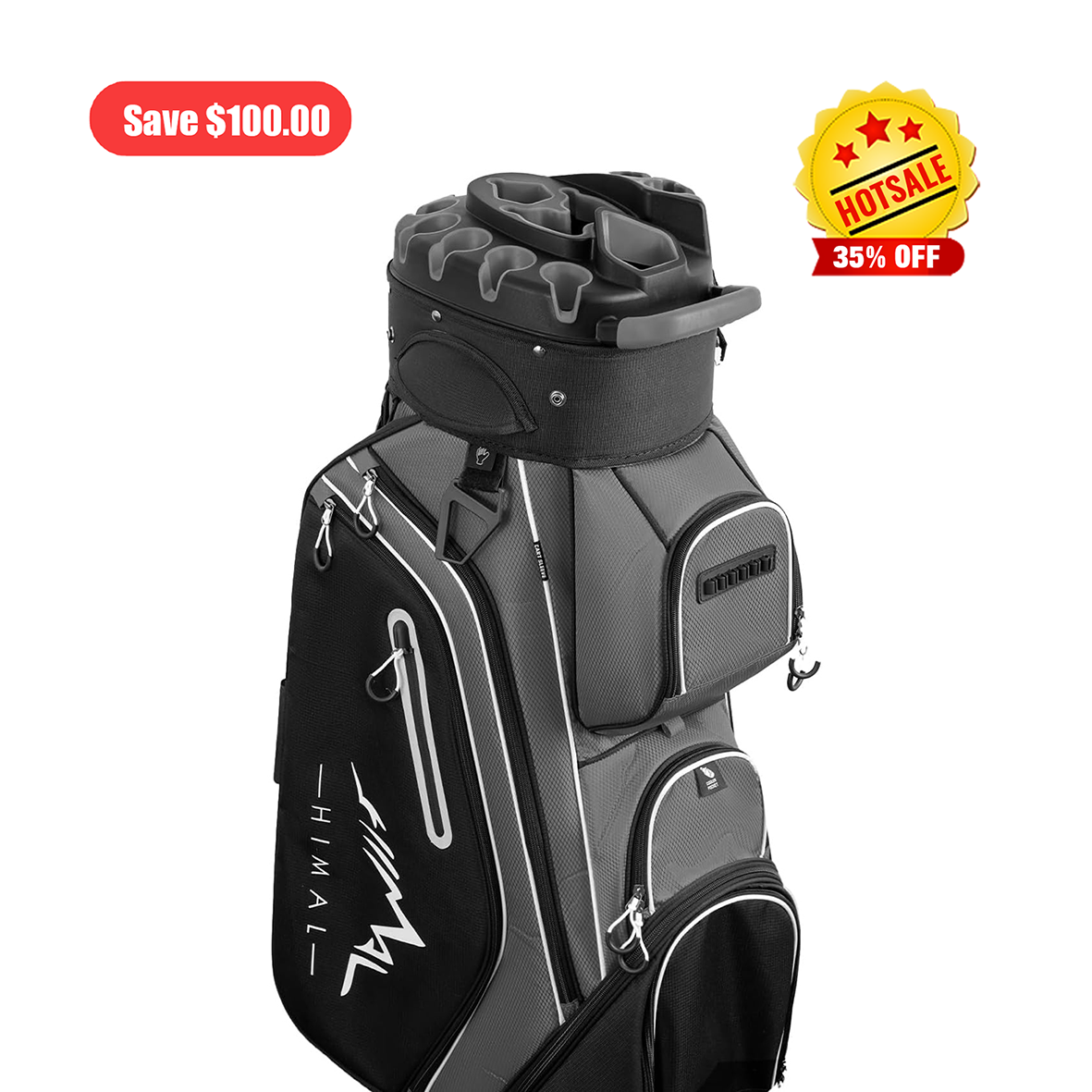 Ample Storage: With multiple pockets, including a spacious apparel pocket, cooler pocket, valuables pocket, and more, this golf cart bag offers ample storage space for your golf essentials, snacks, beverages, and personal items.