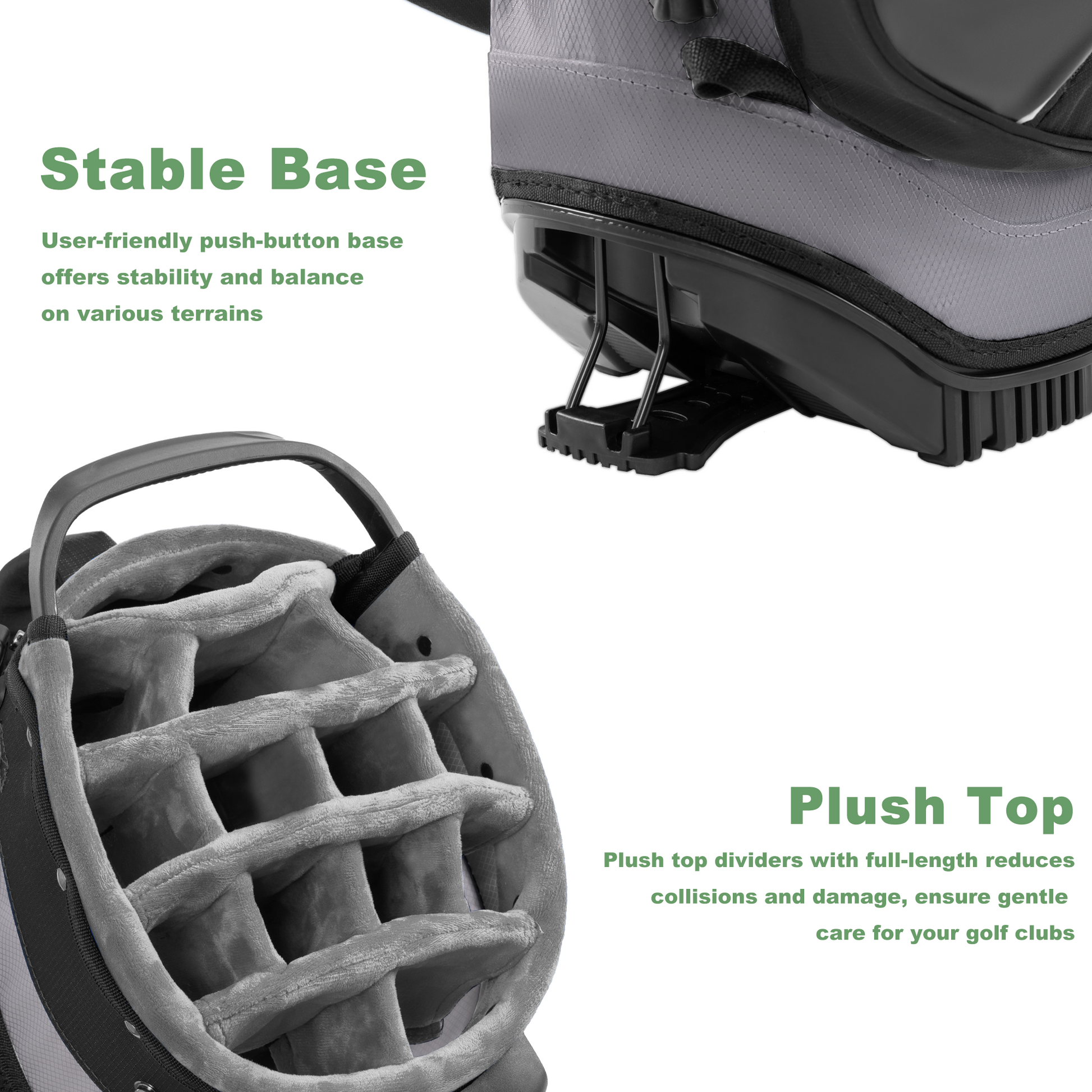 Plush Top for Club Protection:The plush head divider, this golf stand bag ensures gentle care for your golf clubs, 14-way dividers offer individual storage space for each club reduces collisions and damage between clubs, and minimizing wear and tear during transport, keeping your clubs in prime condition
