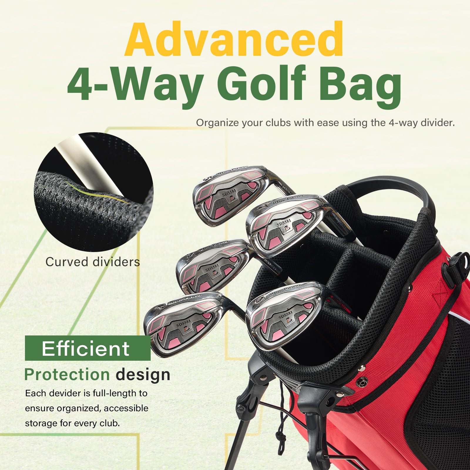 4-Way Full-Length Golf Stand Bag-Bright Red-White