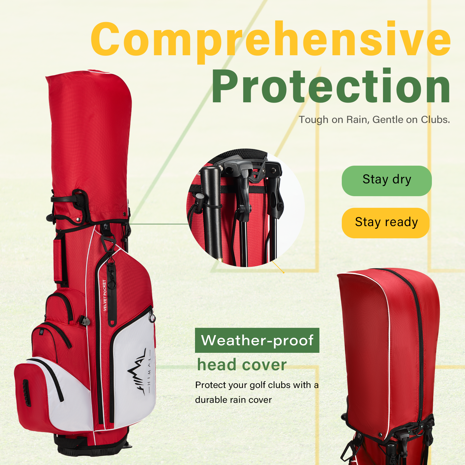 Durable & Long-Lasting: Crafted from durable 420D polyester with water-safe fabric and a rain cover, this golf bag provides excellent protection for your gear against sudden rain and particles, besides the valuables pocket features reverse zippers and pressure-taped seams, ensuring your personal items are kept dry and secure in all conditions
