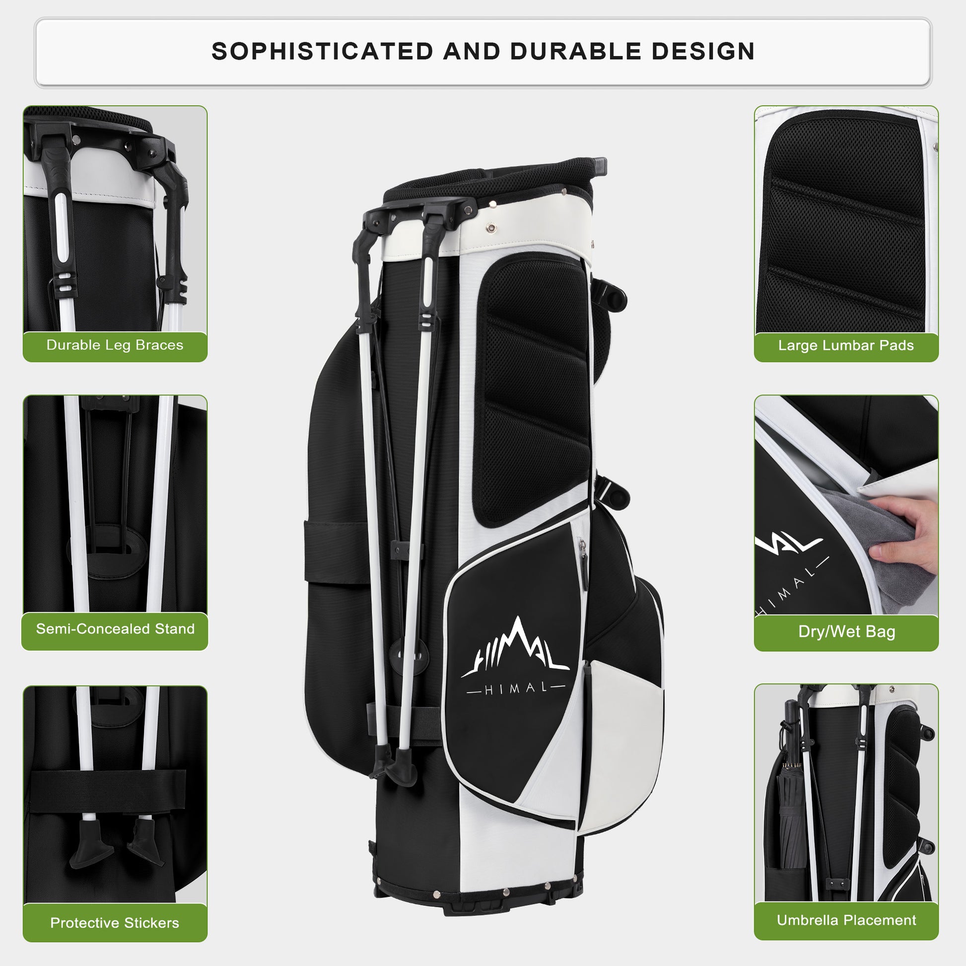 Ample Storage for All Your Essentials-With 8 functional pockets, this golf bag exceeds the storage capacity of competitors. It includes a magnetic valuables pocket, water-protective pocket for phones, and an insulated cooler bag. Additional holders for tees, pens, towels, and an umbrella make it highly convenient